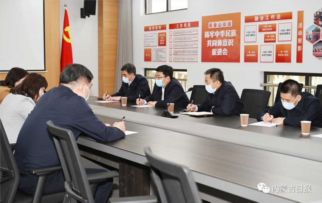 4月20日,孫紹騁在鄂爾多斯市康巴什區(qū)青春山街道神華康城社區(qū)與區(qū)、街道、社區(qū)干部深入交流,共同研究探討基層治理工作。內蒙古日報社融媒體記者馬建荃攝