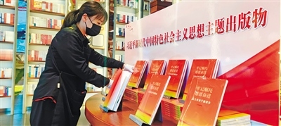 5月4日,內蒙古新華書店工作人員整理擺放《牢記囑托感恩奮進——五大任務干部讀本》。牟野攝