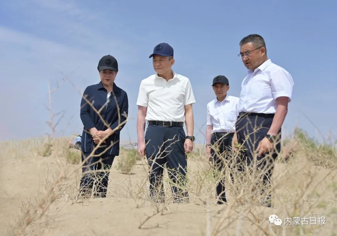 8月2日,自治區(qū)黨委書記孫紹騁來到阿拉善右旗巴丹吉林沙漠和騰格里沙漠交匯處的雅布賴治沙項(xiàng)目區(qū),調(diào)研巴丹吉林沙漠東南緣荒漠化綜合治理情況。記者馬建荃攝