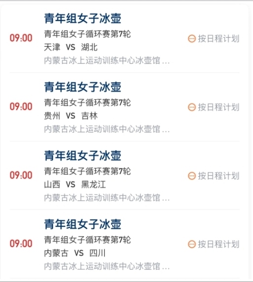 青年組女子冰壺循環(huán)賽第7輪賽程