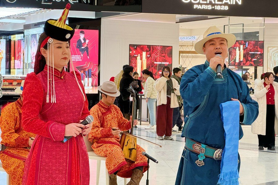呼和浩特市文藝志愿者服務(wù)協(xié)會副主席張恒、國家二級演員李美麗為觀眾表演了二人臺傳統(tǒng)唱段《拜大年》、《掛紅燈》,舞蹈《站在草原望北京》、馬頭琴合奏《萬馬奔騰》、經(jīng)典草原歌曲《敖包相會》等,為現(xiàn)場觀眾展現(xiàn)了呼和浩特多元文化的魅力,特別編排的網(wǎng)紅舞蹈《蒙古舞版科目三》和流行歌曲《奢香夫人》等節(jié)目,引起了現(xiàn)場年輕觀眾的共鳴。藝術(shù)家們用充滿激情的表演送上新春的祝福,并誠邀四海賓朋共赴“十四冬”。