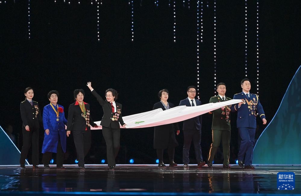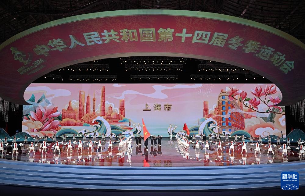 ??2月17日,中華人民共和國第十四屆冬季運(yùn)動(dòng)會(huì)會(huì)旗在開幕式上入場。新華社記者 楊晨光 攝