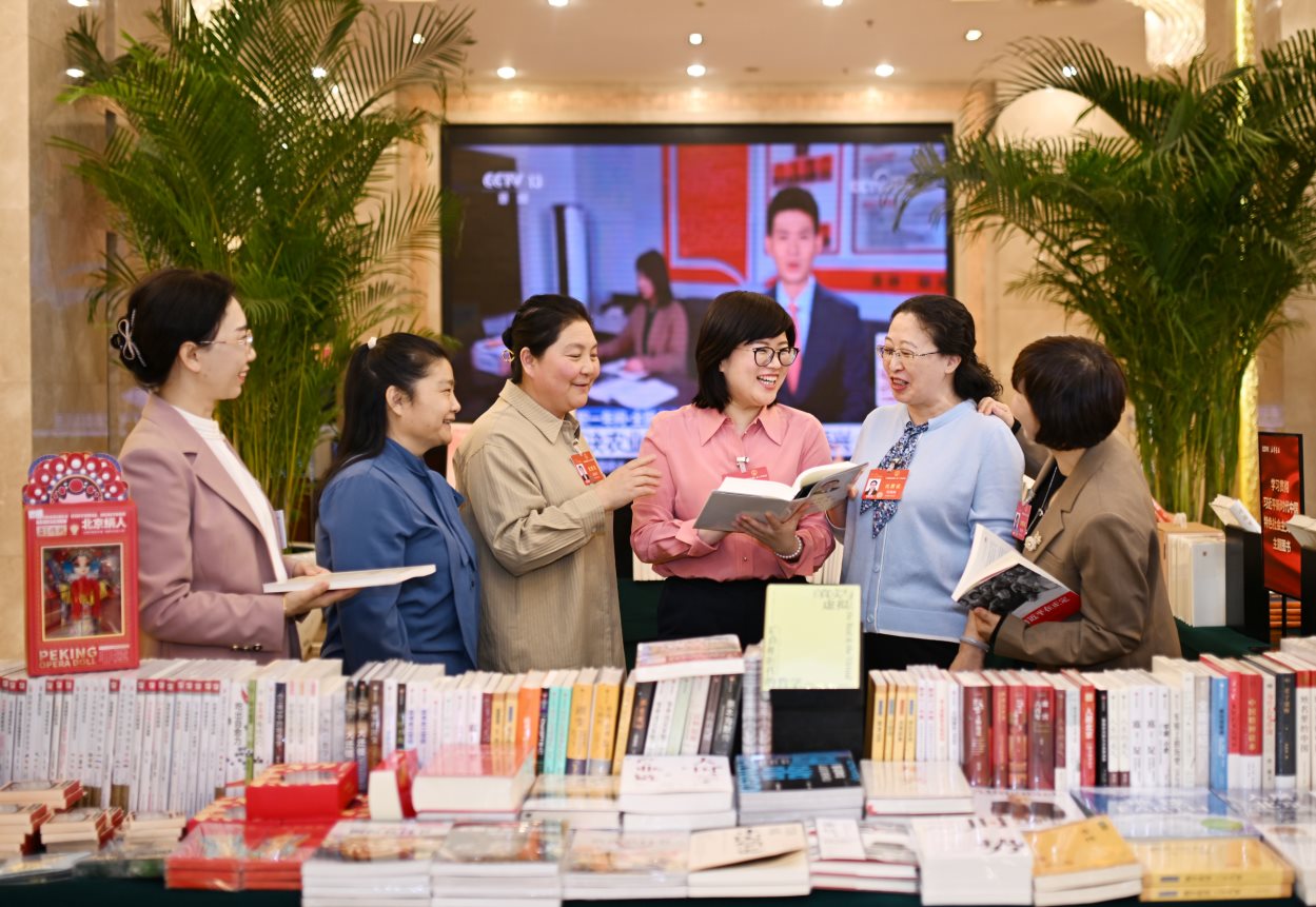 3月7日,參加十四屆全國人大二次會議的內(nèi)蒙古代表團的女代表們在會議間隙來到駐地書吧,選購自己喜歡的書籍。大會開幕以來,她們圍繞我區(qū)經(jīng)濟建設(shè)、科技創(chuàng)新、鄉(xiāng)村振興等方面提建議、談感受,積極建言獻策,為奮力書寫中國式現(xiàn)代化內(nèi)蒙古新篇章貢獻力量。草原全媒記者馬建荃孟和朝魯攝