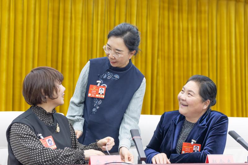 3月7日,全國(guó)人大代表胡海娟(左)建議,通過(guò)在各級(jí)學(xué)校設(shè)立專職家庭教育指導(dǎo)教師等舉措,強(qiáng)化家庭教育指導(dǎo),推動(dòng)家校社協(xié)同育人,促進(jìn)青少年健康成長(zhǎng)。記者 于濤 攝
