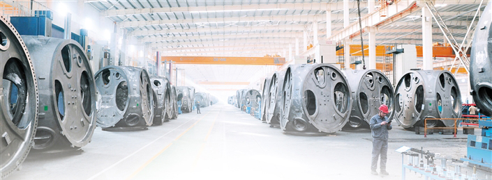 3月7日,走進(jìn)科爾沁工業(yè)園區(qū),在蒙東(通遼)風(fēng)電裝備制造產(chǎn)業(yè)基地內(nèi)蒙古龍馬鑄造有限公司精工車間里,各條生產(chǎn)線有序運轉(zhuǎn),工人們正在進(jìn)行風(fēng)電輪轂加工、底座側(cè)鏜加工等作業(yè)?!敖衲甏汗?jié),我們只休息了兩天,從初二起,全生產(chǎn)線便滿負(fù)荷運轉(zhuǎn),全力追趕訂單進(jìn)度?!眱?nèi)蒙古龍馬制造有限公司副總經(jīng)理時偉介紹道。