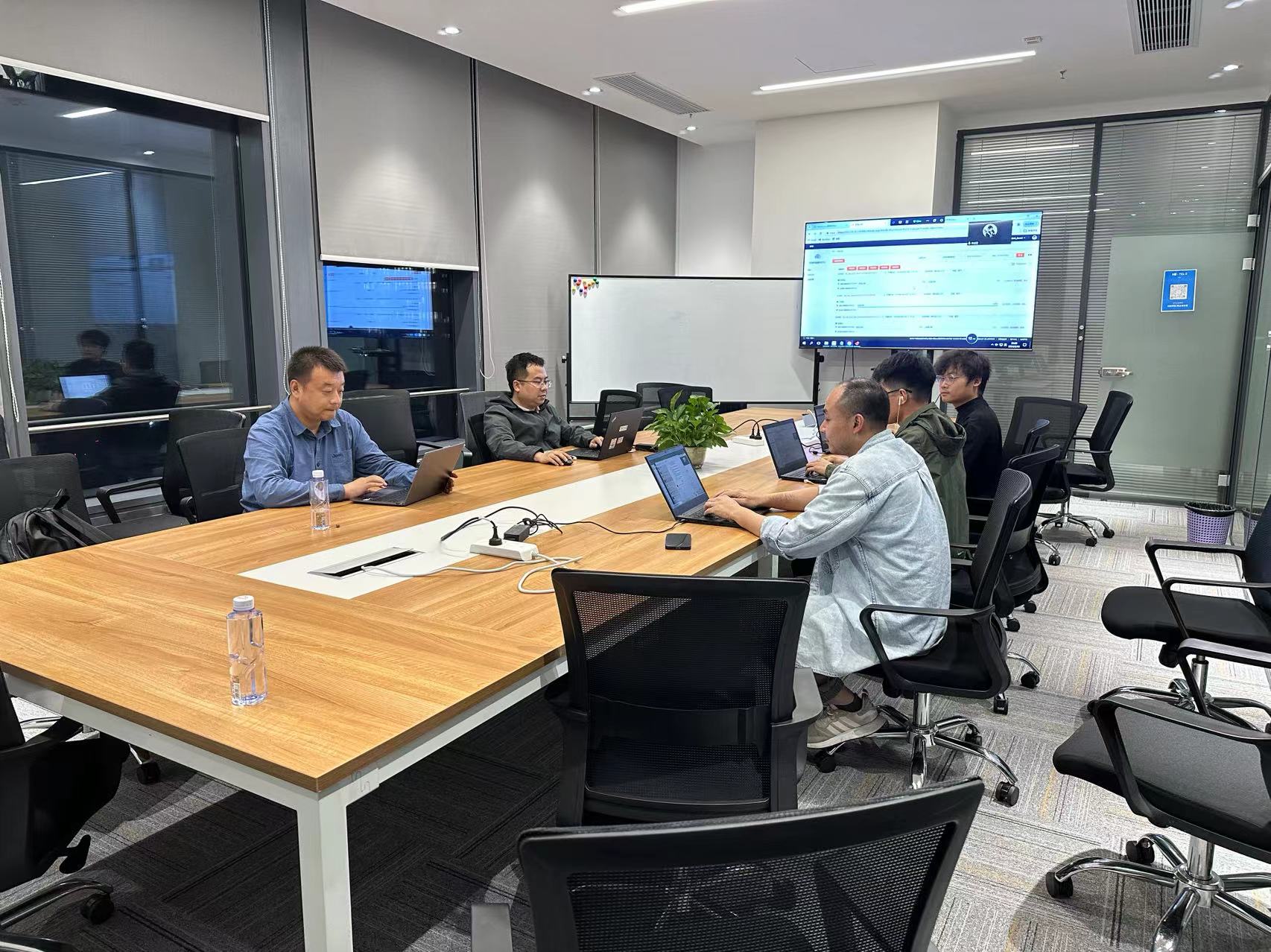 侯曉東帶領(lǐng)團隊在討論研究業(yè)務(wù)方案。