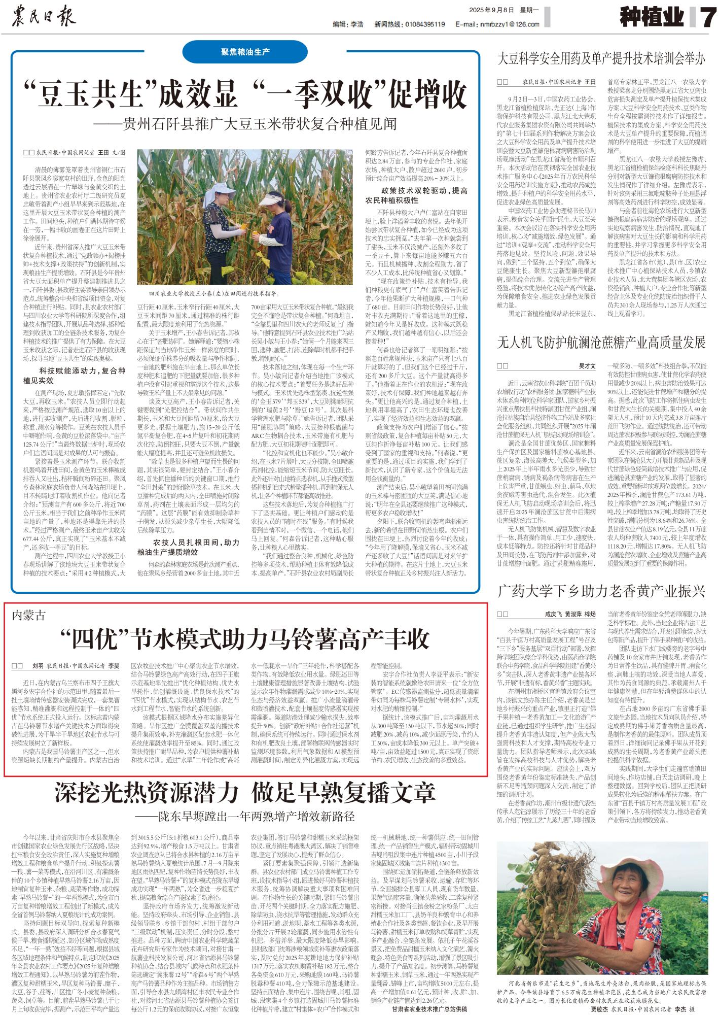 2025年9月8日,《農(nóng)民日報》第7版整版刊發(fā)題為《內蒙古“四優(yōu)”節(jié)水模式助力馬鈴薯高產(chǎn)豐收》的文章,報道了在內蒙古烏蘭察布市四子王旗大黑河鄉(xiāng)宏宇合作社的示范田里,隨著最后一批土壤墑情傳感器安裝調試完成,一套集智能感知、精準灌溉和遠程控制于一體的“四優(yōu)”節(jié)水系統(tǒng)正式投入運行。這標志著內蒙古在馬鈴薯節(jié)水增產(chǎn)關鍵技術方面取得突破性進展,為干旱半干旱地區(qū)農(nóng)業(yè)節(jié)水與可持續(xù)發(fā)展樹立了新樣板。
