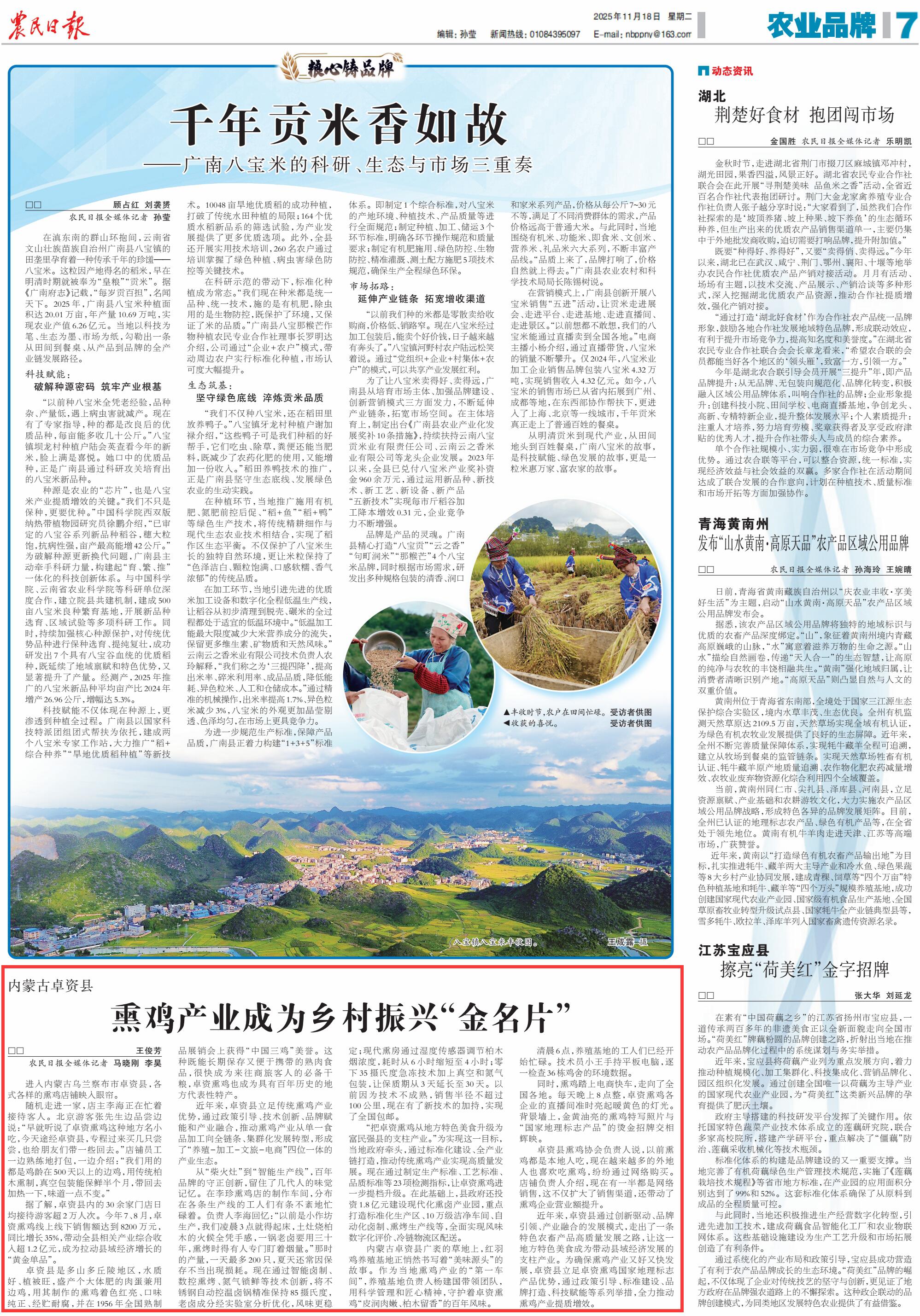 2025年11月18日《農(nóng)民日報》第7版刊發(fā)了《內(nèi)蒙古卓資縣熏雞產(chǎn)業(yè)成為鄉(xiāng)村振興“金名片”》的文章,報道了近年來,卓資縣立足傳統(tǒng)熏雞產(chǎn)業(yè)優(yōu)勢,通過政策引導(dǎo)、技術(shù)創(chuàng)新、品牌賦能和產(chǎn)業(yè)融合,推動熏雞產(chǎn)業(yè)從單一食品加工向全鏈條、集群化發(fā)展轉(zhuǎn)型,形成了“養(yǎng)殖-加工-文旅-電商”四位一體的產(chǎn)業(yè)生態(tài)。