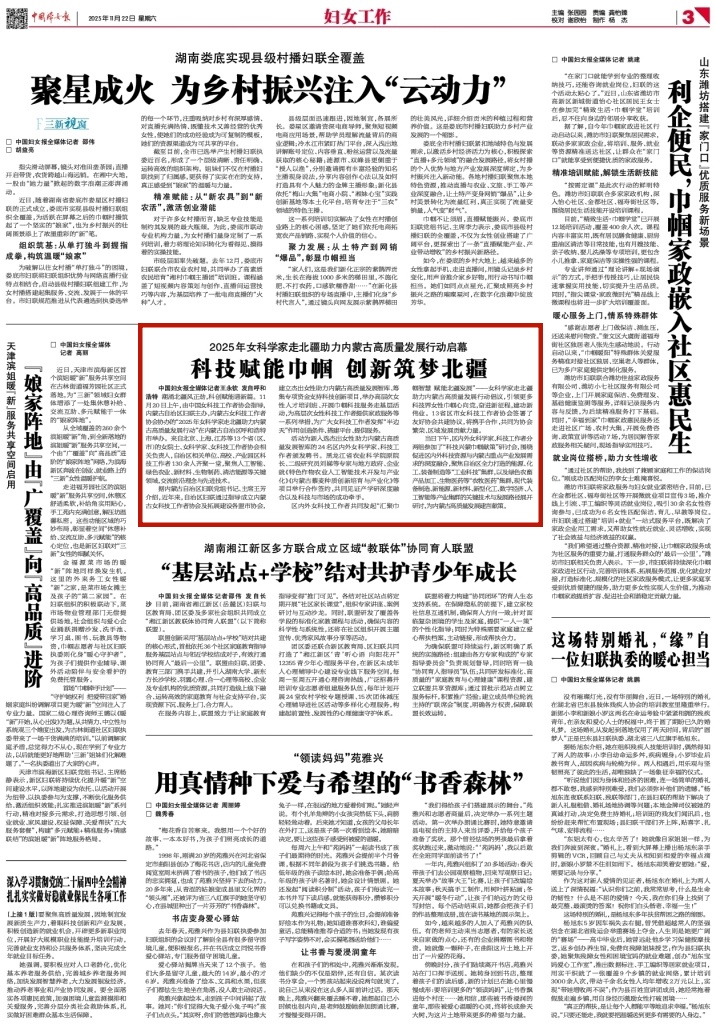2025年11月22日《中國婦女報》第3版刊發(fā)了《2025年女科學家走北疆助力內(nèi)蒙古高質(zhì)量發(fā)展行動啟幕 科技賦能巾幗 創(chuàng)新筑夢北疆》的文章,報道了“2025年女科學家走北疆助力內(nèi)蒙古高質(zhì)量發(fā)展行動”在內(nèi)蒙古自治區(qū)呼和浩特市舉辦,來自13個?。▍^(qū)、市)的女院士、女科學家等130余人齊聚一堂,交流前沿理念與先進技術(shù)。