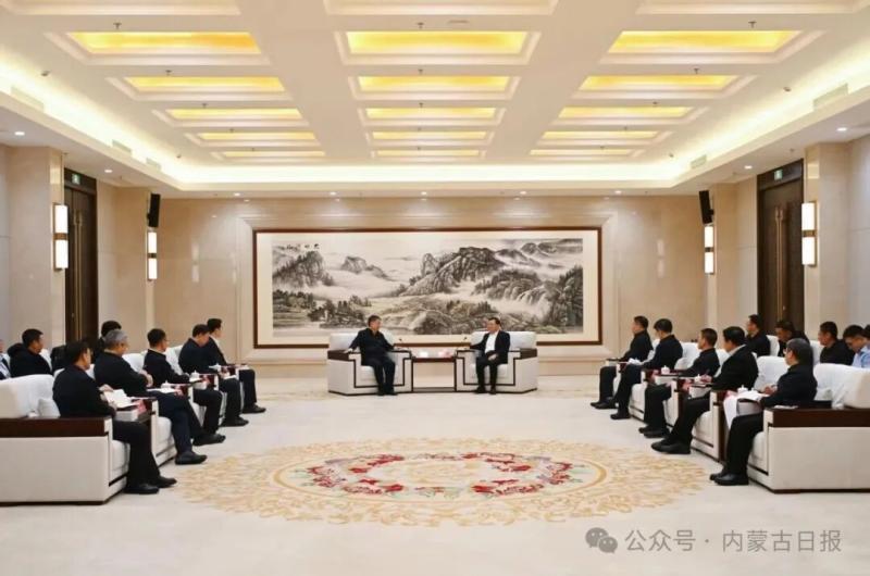 11月27日,自治區(qū)黨委書記王偉中,自治區(qū)黨委副書記、自治區(qū)人民政府主席包鋼在呼和浩特會(huì)見中國(guó)華能集團(tuán)有限公司黨組書記、董事長(zhǎng)溫樞剛一行。草原云·內(nèi)蒙古新聞網(wǎng)記者 馬建兵 攝