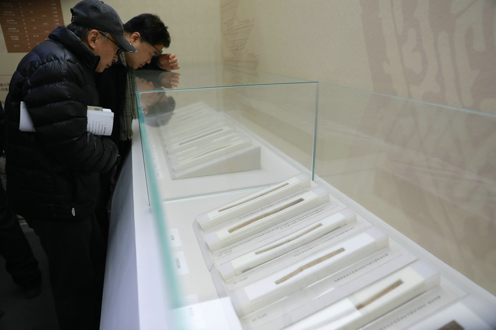 觀眾參觀“‘簡’讀居延—居延遺址出土漢簡專題展”