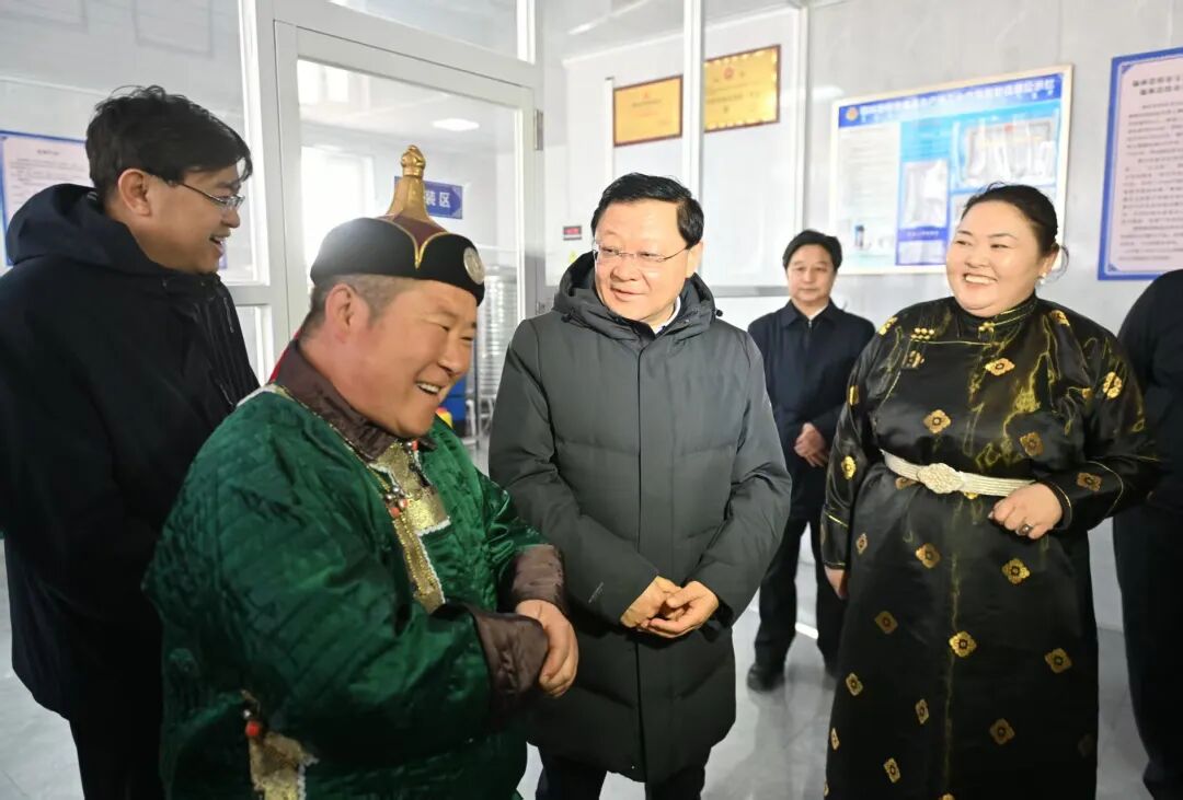 3月23日,自治區(qū)黨委書記、人大常委會主任王偉中在阿巴嘎旗伊克塞畜牧服務有限公司調(diào)研獸醫(yī)機構(gòu)社會化服務情況。草原云·內(nèi)蒙古新聞網(wǎng)記者 馬建兵 攝