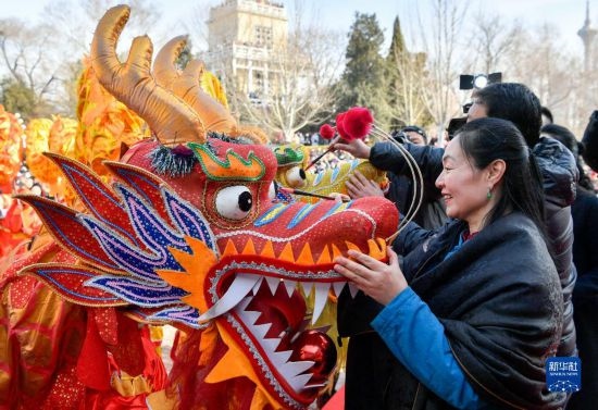當(dāng)日是農(nóng)歷二月初二,又稱“春龍節(jié)”?!扒帻埆I(xiàn)瑞 玉兔呈祥”第四屆舞龍大會(huì)在天津市水上公園舉行,眾多市民群眾前來(lái)觀看舞龍、漢沽飛镲、空竹舞龍等特色民俗活動(dòng),感受傳統(tǒng)文化的魅力。