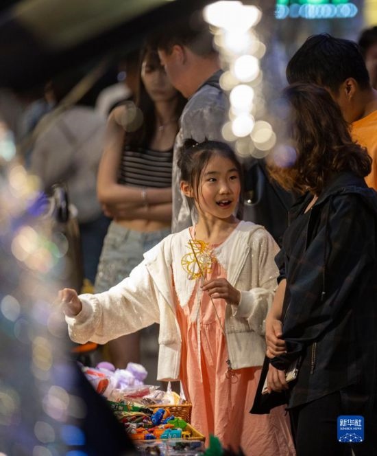 5月1日,游客在寧夏銀川市西夏區(qū)懷遠(yuǎn)觀光夜市游覽。