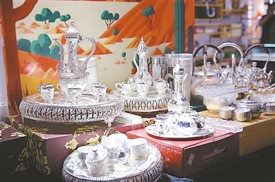 納米比亞展區(qū)展示的銀器。