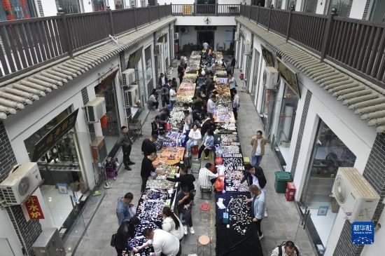 9月25日在禹州市神垕鈞瓷工業(yè)文化園拍攝的古玩市場(chǎng)。