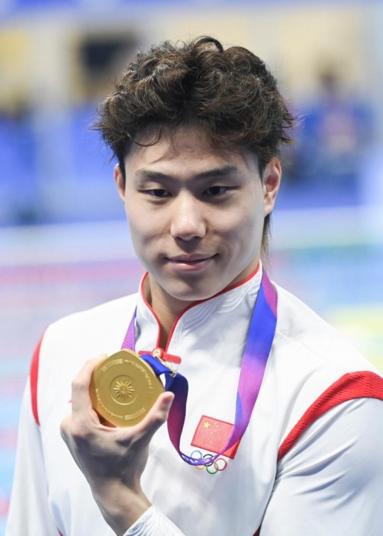 男子200米蝶泳決賽中,日本選手本多燈以創(chuàng)賽會紀錄的1分53秒15奪冠,中國臺北選手王冠閎和中國選手陳俊兒分獲銀牌和銅牌。