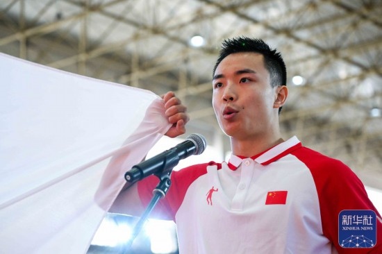 運(yùn)動員代表曹茂園在成立大會上宣誓。 新華社記者 顏麟蘊(yùn) 攝