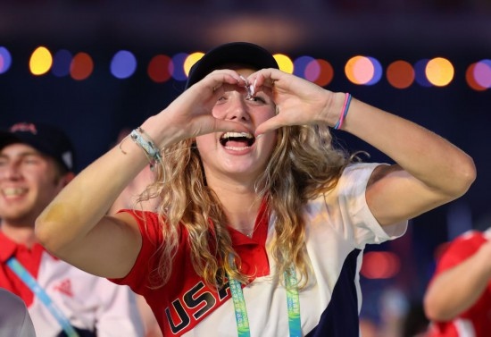 7月28日,美國大學(xué)生體育代表團在開幕式上入場。新華社記者 楊青 攝