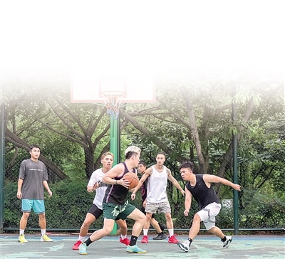 市民在成都杉板橋籃球場內打球。本報記者 伊 霄攝