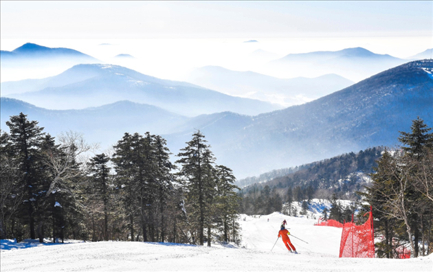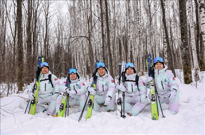 在新疆白云國際滑雪場,許秀娟(右)在給愛人和兒子拍照。哈爾濱人許秀娟曾是專業(yè)運動員,代表國家隊拿過國際大賽獎牌。退役后她來到新疆,在這里她和愛人相識,一起開辦培訓機構(gòu),面向青少年推廣冰雪運動。