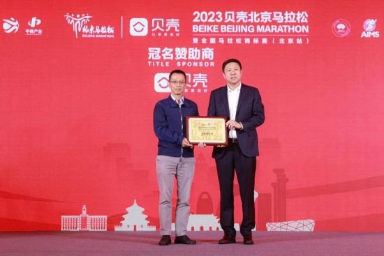 北馬組委會向貝殼副總裁高軍頒發(fā)北馬賽事紀(jì)念牌