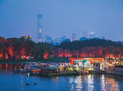 北京市朝陽區(qū)通過建設(shè)亮馬河國際風(fēng)情水岸,以河道復(fù)興引領(lǐng)城市更新,讓市民和游客樂享都市生態(tài)美景,感受多彩首都文化。圖為亮馬河國際風(fēng)情水岸風(fēng)光。 王 初攝(人民圖片)