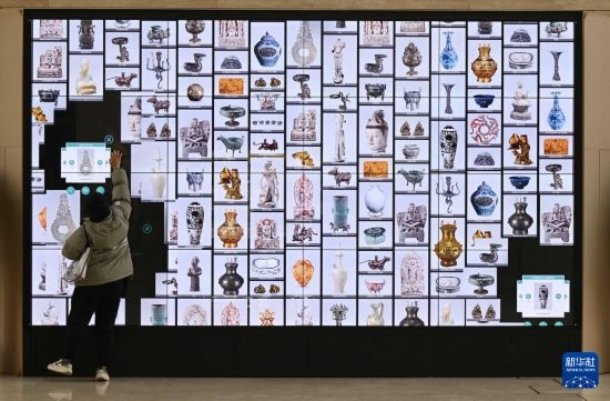 1月12日,游客在位于石家莊市的河北博物院參與互動(dòng)游戲。