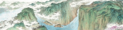 中國(guó)畫(huà)《長(zhǎng)江春色圖》(局部),江蘇省國(guó)畫(huà)院集體創(chuàng)作。
