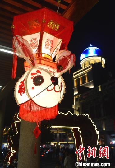 圖為2月20日晚,家長帶著小孩在泉州中山路賞燈。中新網(wǎng)記者 張斌 攝