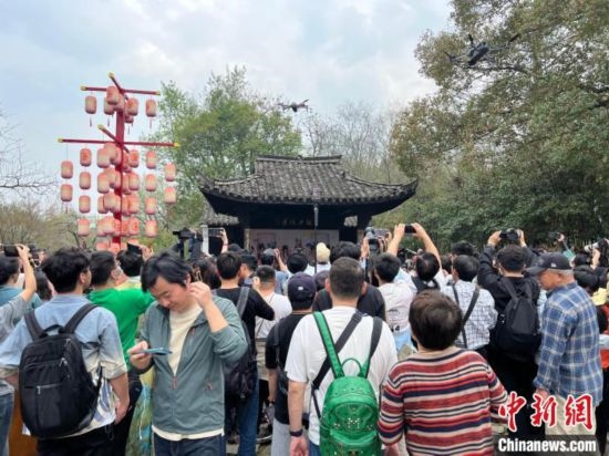 當(dāng)天,伴隨著美妙的音樂(lè),“十二花神”乘坐氦氣球沐風(fēng)而上“天女散花”,繽紛的花瓣隨風(fēng)飄灑,將象征著百花齊放、春滿人間的美好祝愿灑向人間。隨后,“十二花神”登上宋韻花船,沿著西溪濕地蜿蜒的河道緩緩巡游,唯美浪漫的畫(huà)面為游客獻(xiàn)上了一場(chǎng)視覺(jué)盛宴。