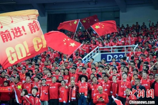 3月26日晚,在天津舉行的2026年國際足聯(lián)世界杯亞洲區(qū)預選賽36強賽C組比賽中,中國隊主場4比1戰(zhàn)勝新加坡隊。圖為球迷為中國隊加油助威。佟郁 攝