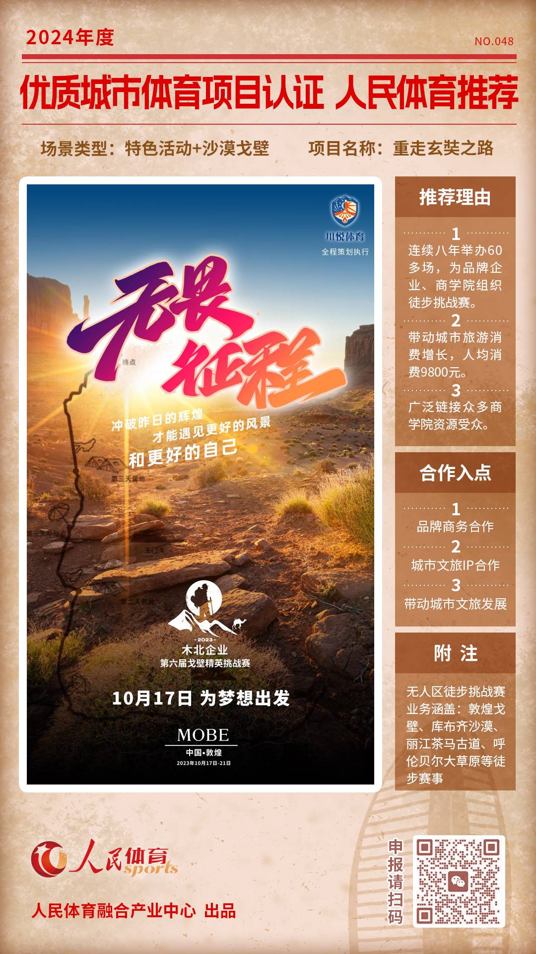 人民體育發(fā)起的“優(yōu)質(zhì)體育賽事及活動(dòng)認(rèn)證推薦計(jì)劃”,2024年04月推出第六批,共9個(gè)推薦項(xiàng)目。