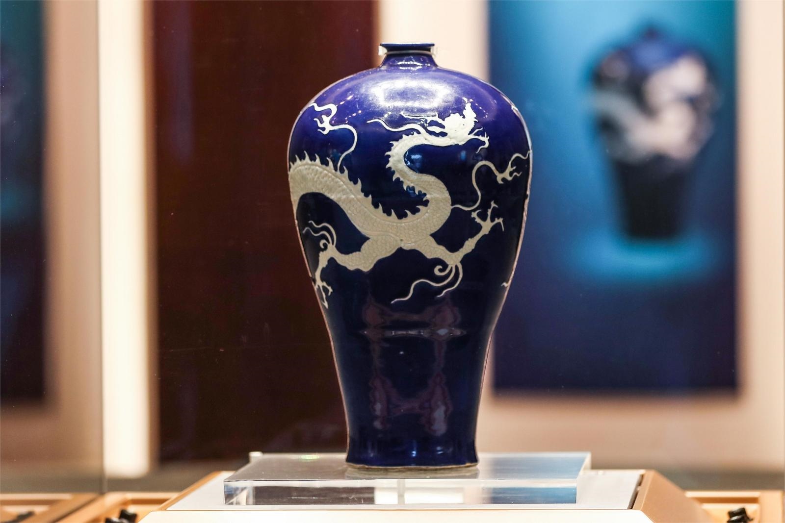 700年前的元代霽藍釉白龍紋梅瓶,是東方美學的極致表達。