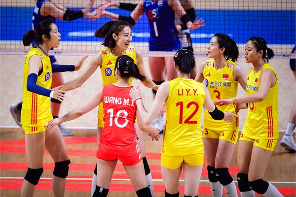 中國隊球員慶祝得分。圖片來源:國際排聯(lián)