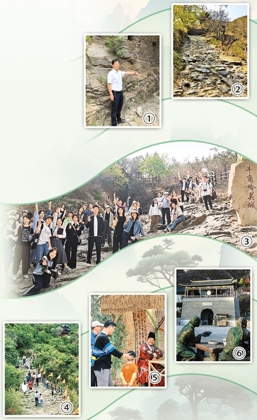 圖①:王春和介紹古道上的蹄窩。本報(bào)記者 嚴(yán) 冰攝圖②:京西古道蹄窩。陳 闖攝圖③:高校學(xué)生走進(jìn)京西古道。艾 寧攝圖④:游客游覽京西古道。資料圖片圖⑤:游客在京西古道茶棚體驗(yàn)沉浸式互動(dòng)。資料圖片圖⑥:京西古道景區(qū)城門(mén)樓。任梅桂攝