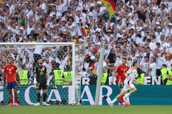 新華社德國斯圖加特7月5日電(記者杜哲宇、岳東興、肖世堯)2024歐錦賽四分之一決賽5日上演精彩對(duì)決,西班牙隊(duì)?wèi){借在加時(shí)賽最后時(shí)刻的進(jìn)球以2:1力克德國隊(duì),昂首挺進(jìn)四強(qiáng)。