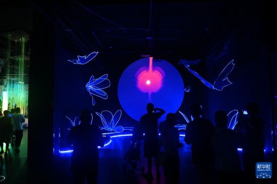 7月5日,游客在杭州宋城景區(qū)觀看光影互動(dòng)。