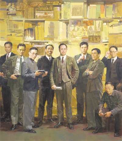 正在舉辦的第十四屆全國美術(shù)作品展覽進京作品展上,撲面而來的藝術(shù)形象是腳踏中華大地的各族人民,是中國近現(xiàn)代文化史上的先賢圣哲,是和我們一道相擁而立的堂堂中國人。這些形象剛強勇毅,如潮如云,傳遞著眾志成城的精神力量,扣動人心。譬如,呂鵬《山河頌》,以濃郁的色調(diào),再現(xiàn)傅抱石、關(guān)山月兩位前輩創(chuàng)作《江山如此多嬌》的情景,鐫刻新中國美術(shù)史上重要一幕;鄔大勇《我心中的英雄》塑造了畫家少年時代的英雄偶像——錢學(xué)森等一代科學(xué)家。還有許多氣勢宏大的創(chuàng)作,它們既是社會生活、時代精神的藝術(shù)載體,又是美術(shù)工作者面對歷史、面對人民的激情熔爐。這些作品以人民形象為根基,深植時代沃土,構(gòu)成歷史與現(xiàn)實相輝映的史詩畫卷。