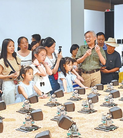 “第十四屆全國美術(shù)作品展覽實(shí)驗(yàn)藝術(shù)、數(shù)字藝術(shù)與動(dòng)畫作品展”專家導(dǎo)賞現(xiàn)場。中國美術(shù)家協(xié)會(huì)供圖