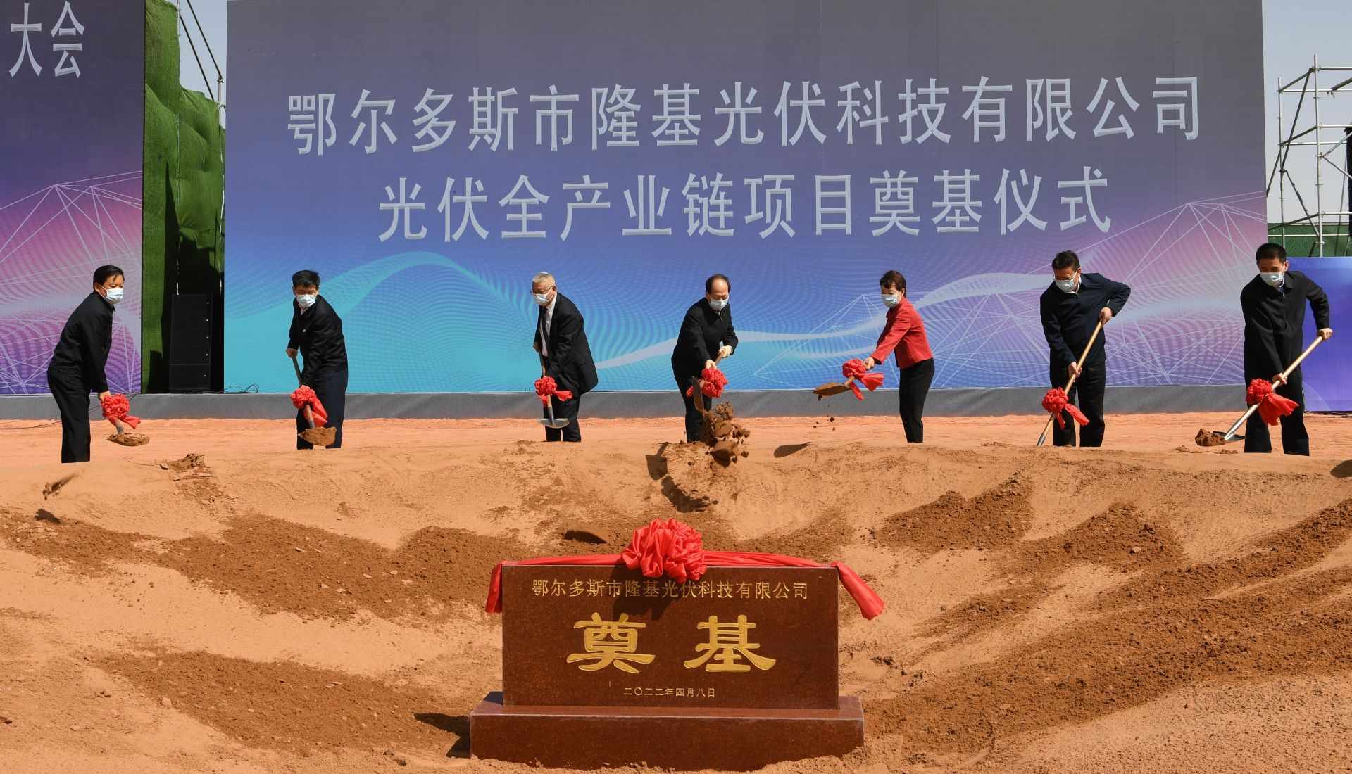 4月8日上午,自治區(qū)黨委書記、人大常委會(huì)主任石泰峰,自治區(qū)黨委副書記、自治區(qū)主席王莉霞出席鄂爾多斯市隆基光伏科技有限公司光伏全產(chǎn)業(yè)鏈項(xiàng)目奠基儀式。內(nèi)蒙古日?qǐng)?bào)社融媒體記者 袁永紅 攝