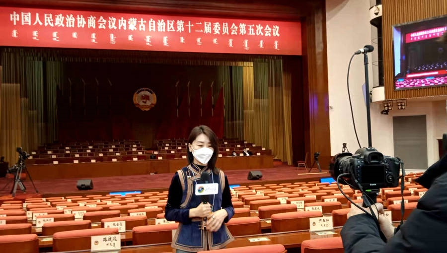 中國人民政治協(xié)商會(huì)議內(nèi)蒙古自治區(qū)第十二屆委員會(huì)第五次會(huì)議將于1月20日至23日在呼和浩特召開。圖為會(huì)議開始前,記者在會(huì)場提前試鏡。