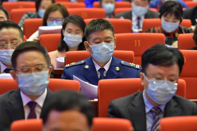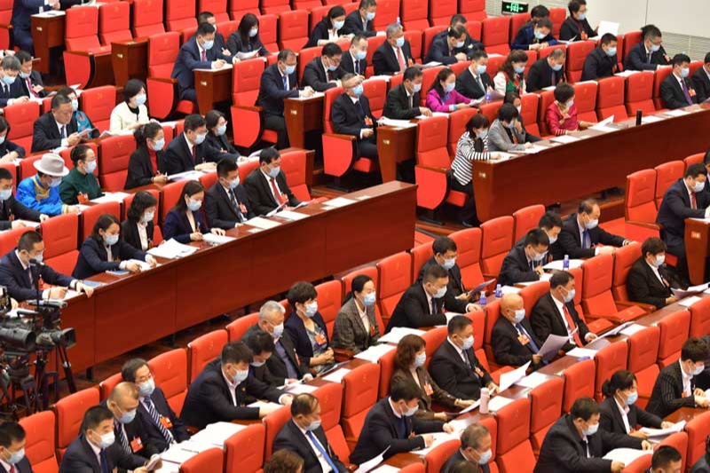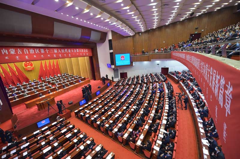 1月21日上午9時(shí),自治區(qū)第十三屆人民代表大會(huì)第六次會(huì)議在內(nèi)蒙古人民會(huì)堂隆重開(kāi)幕。記者 馬建荃攝