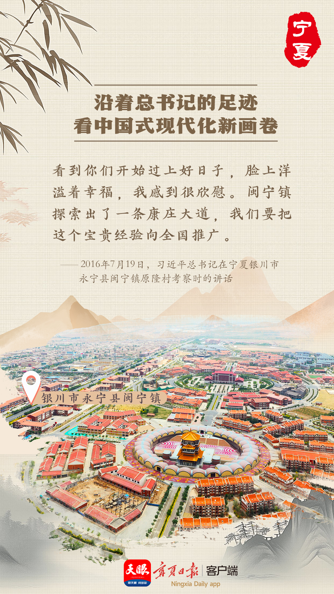 閩寧村的奠基,開(kāi)啟了閩寧兩省區(qū)對(duì)口扶貧協(xié)作的新篇章。20多年來(lái),閩寧村從無(wú)到有、從弱到強(qiáng),形成了特色種植、特色養(yǎng)殖、文化旅游、設(shè)施農(nóng)業(yè)、商貿(mào)物流等產(chǎn)業(yè),移民年人均可支配收入從500元躍升到1.8萬(wàn)多元。曾經(jīng)的“干沙灘”變成了綠樹(shù)成蔭、良田萬(wàn)頃、經(jīng)濟(jì)繁榮、百姓富裕的“金沙灘”。